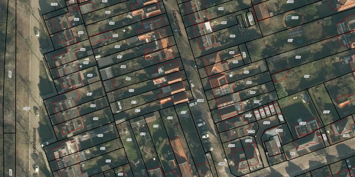 Gebruik de zoekbalk of klik op een perceel voor informatie over de adressen binnen dit perceel.
