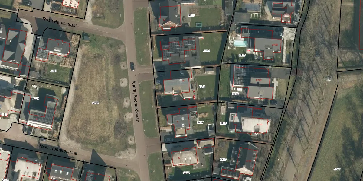 Gebruik de zoekbalk of klik op een perceel voor informatie over de adressen binnen dit perceel.