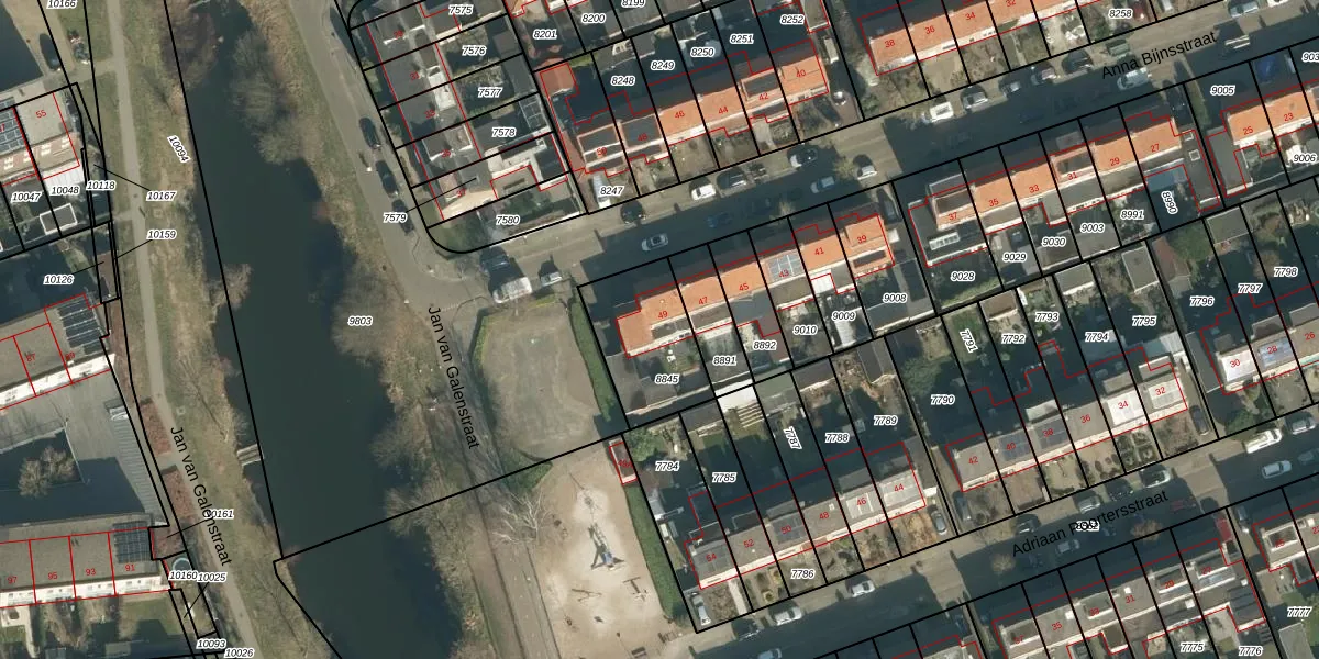 Anna Bijnsstraat 49 is gelegen op kadastraal perceel VUG00B8845. Deze kadastrale aanduiding is uniek en wordt gebruikt door het Kadaster om eigendomsrechten en andere zakelijke rechten vast te leggen. Het perceel maakt onderdeel uit van de kadastrale gemeente Vught.