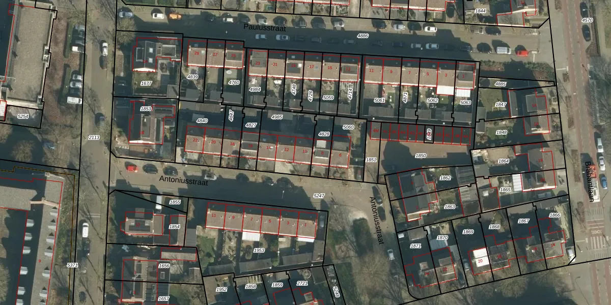 Het perceel waarop Antoniusstraat 10 staat heeft een oppervlakte van 477 m². Dit is een groot perceel. De perceeloppervlakte wordt geregistreerd door het Kadaster. Gedetailleerde informatie over de maten van dit perceel kunt u vinden in het rapport Kadastrale kaart met maatvoering van Antoniusstraat 10.
