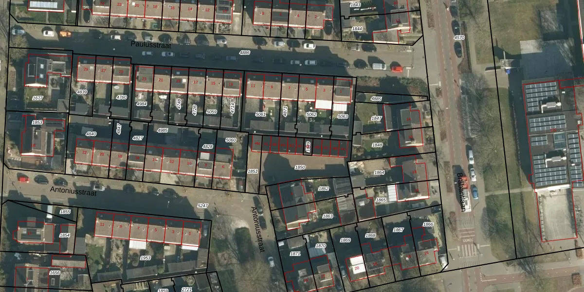 Het perceel waarop Antoniusstraat 4-G staat heeft een oppervlakte van 440 m². Dit is een groot perceel. De perceeloppervlakte wordt geregistreerd door het Kadaster. Gedetailleerde informatie over de maten van dit perceel kunt u vinden in het rapport Kadastrale kaart met maatvoering van Antoniusstraat 4-G.