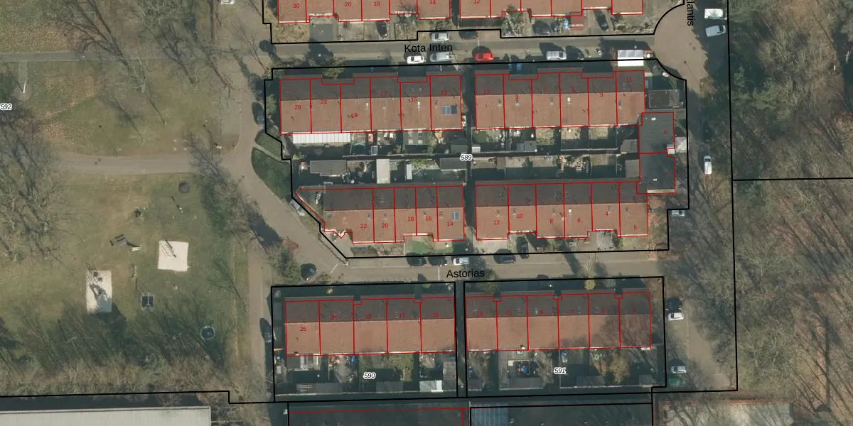 Het perceel waarop Astorias 16 staat heeft een oppervlakte van 4109 m². Dit is een zeer groot perceel. De perceeloppervlakte wordt geregistreerd door het Kadaster. Gedetailleerde informatie over de maten van dit perceel kunt u vinden in het rapport Kadastrale kaart met maatvoering van Astorias 16.