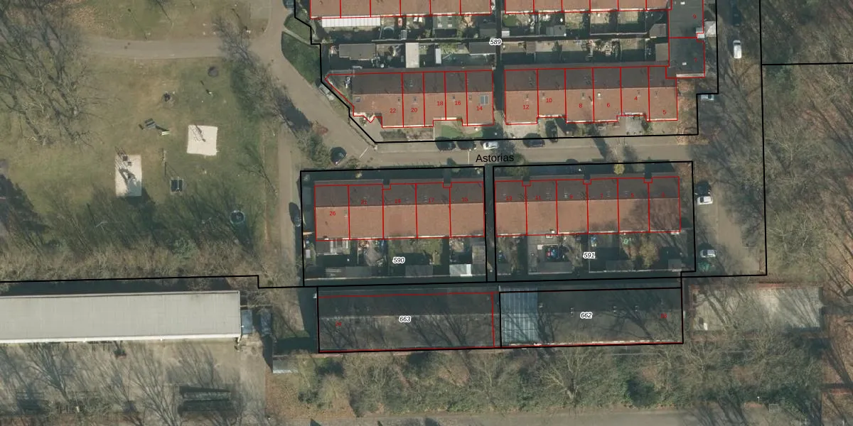 Het perceel waarop Astorias 17 staat heeft een oppervlakte van 1165 m². Dit is een zeer groot perceel. De perceeloppervlakte wordt geregistreerd door het Kadaster. Gedetailleerde informatie over de maten van dit perceel kunt u vinden in het rapport Kadastrale kaart met maatvoering van Astorias 17.