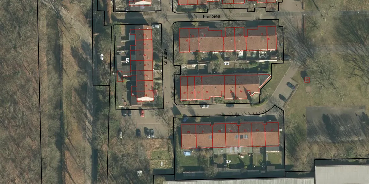 Het perceel waarop Astorias 34 staat heeft een oppervlakte van 2453 m². Dit is een zeer groot perceel. De perceeloppervlakte wordt geregistreerd door het Kadaster. Gedetailleerde informatie over de maten van dit perceel kunt u vinden in het rapport Kadastrale kaart met maatvoering van Astorias 34.