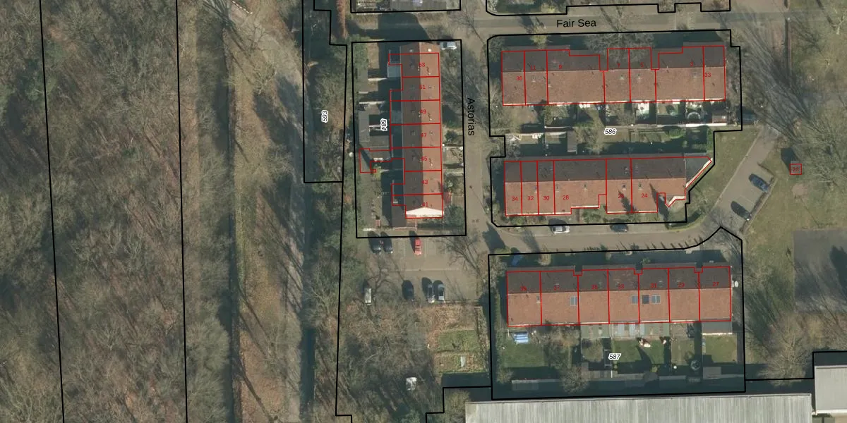 Het perceel waarop Astorias 41 staat heeft een oppervlakte van 1192 m². Dit is een zeer groot perceel. De perceeloppervlakte wordt geregistreerd door het Kadaster. Gedetailleerde informatie over de maten van dit perceel kunt u vinden in het rapport Kadastrale kaart met maatvoering van Astorias 41.