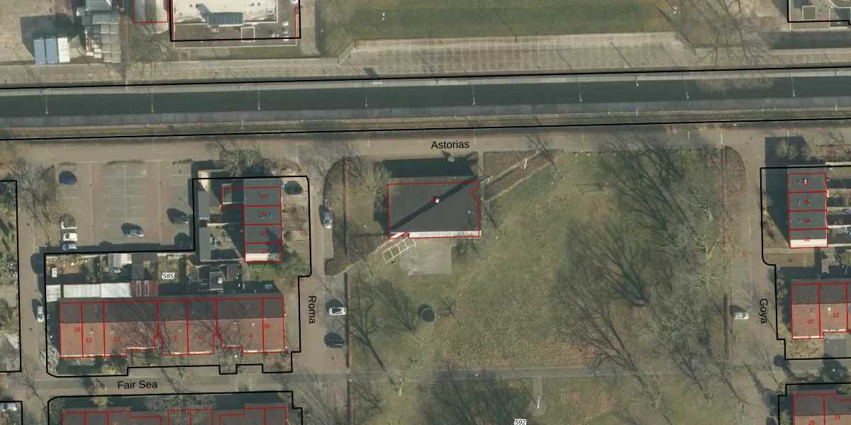 Het perceel waarop Astorias 42 staat heeft een oppervlakte van 2,6 ha. Dit is een zeer groot perceel. De perceeloppervlakte wordt geregistreerd door het Kadaster. Gedetailleerde informatie over de maten van dit perceel kunt u vinden in het rapport Kadastrale kaart met maatvoering van Astorias 42.