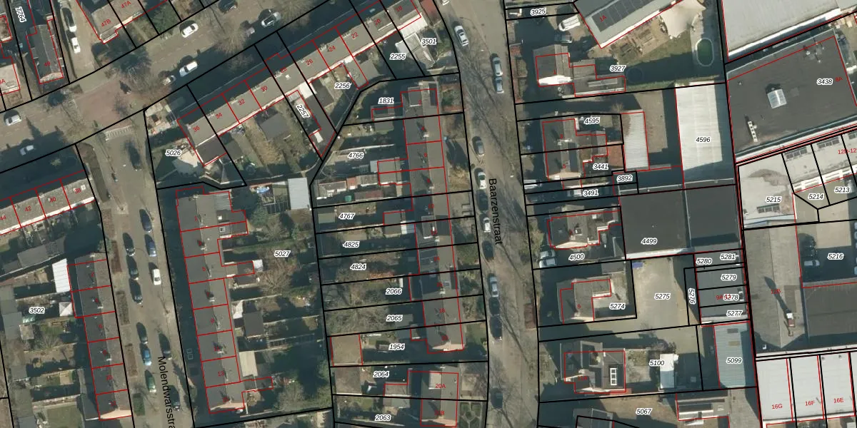 Het perceel waarop Baarzenstraat 10 staat heeft een oppervlakte van 225 m². Dit is een middelgroot perceel. De perceeloppervlakte wordt geregistreerd door het Kadaster. Gedetailleerde informatie over de maten van dit perceel kunt u vinden in het rapport Kadastrale kaart met maatvoering van Baarzenstraat 10.