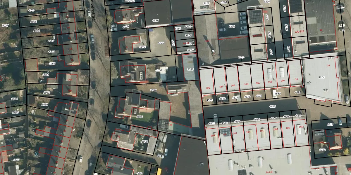 Het perceel waarop Baarzenstraat 13-B staat heeft een oppervlakte van 963 m². Dit is een groot perceel. De perceeloppervlakte wordt geregistreerd door het Kadaster. Gedetailleerde informatie over de maten van dit perceel kunt u vinden in het rapport Kadastrale kaart met maatvoering van Baarzenstraat 13-B.