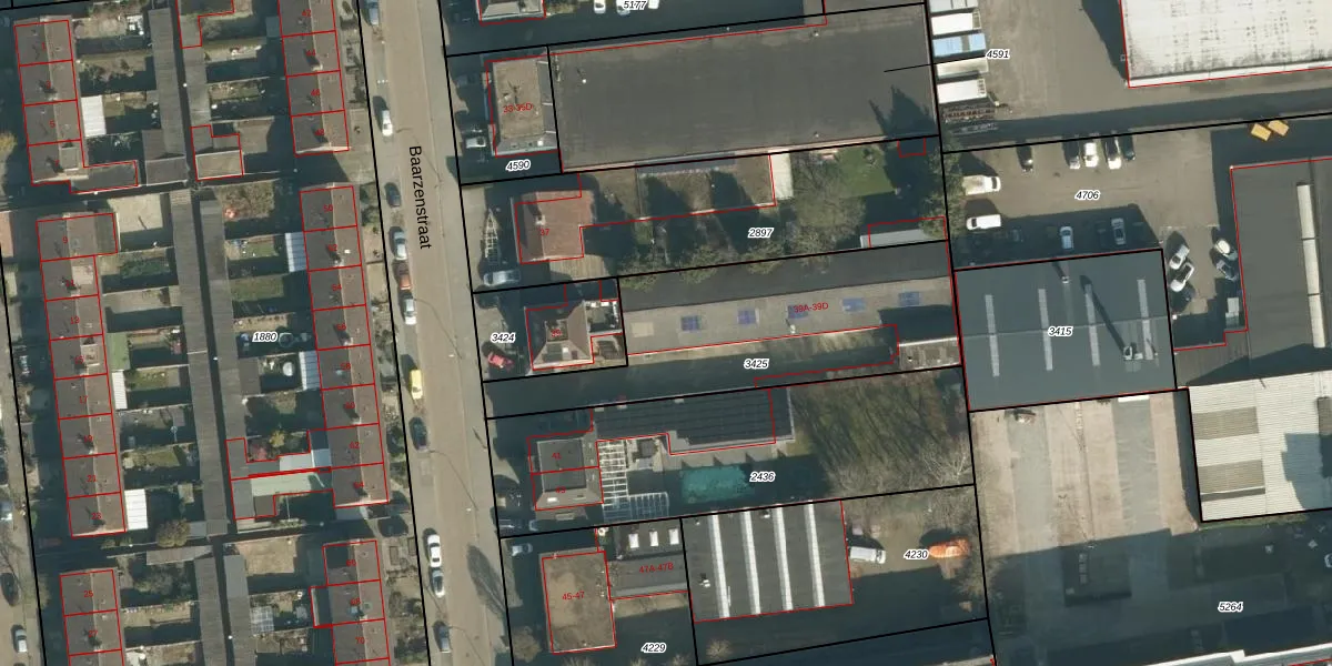 Het perceel waarop Baarzenstraat 39-A staat heeft een oppervlakte van 1074 m². Dit is een zeer groot perceel. De perceeloppervlakte wordt geregistreerd door het Kadaster. Gedetailleerde informatie over de maten van dit perceel kunt u vinden in het rapport Kadastrale kaart met maatvoering van Baarzenstraat 39-A.