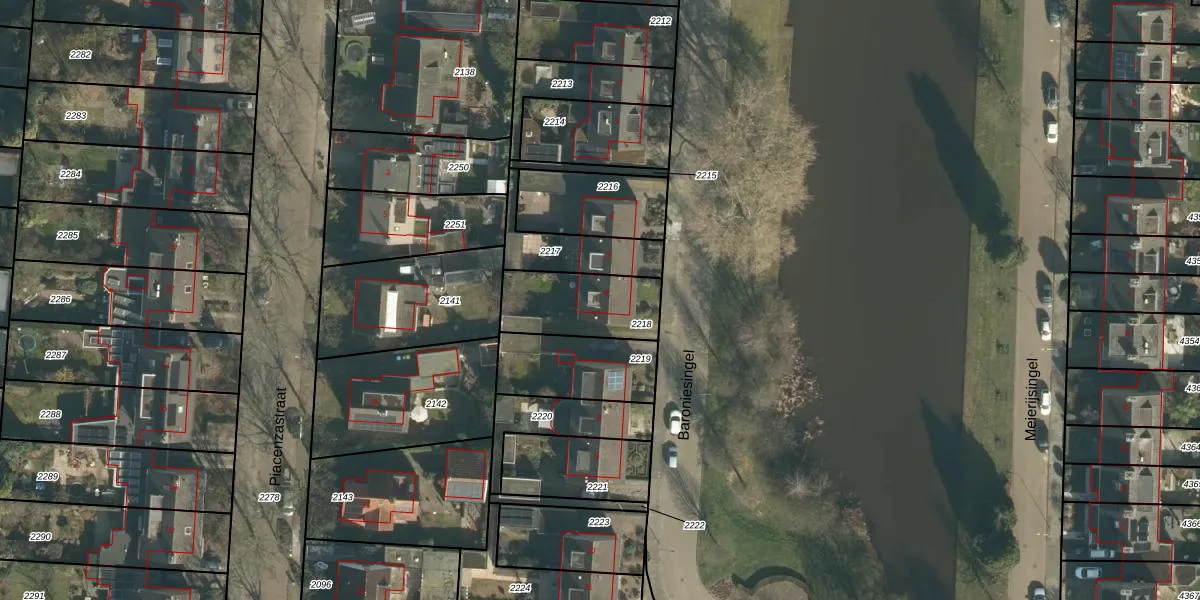 Gebruik de zoekbalk of klik op een perceel voor informatie over de adressen binnen dit perceel.