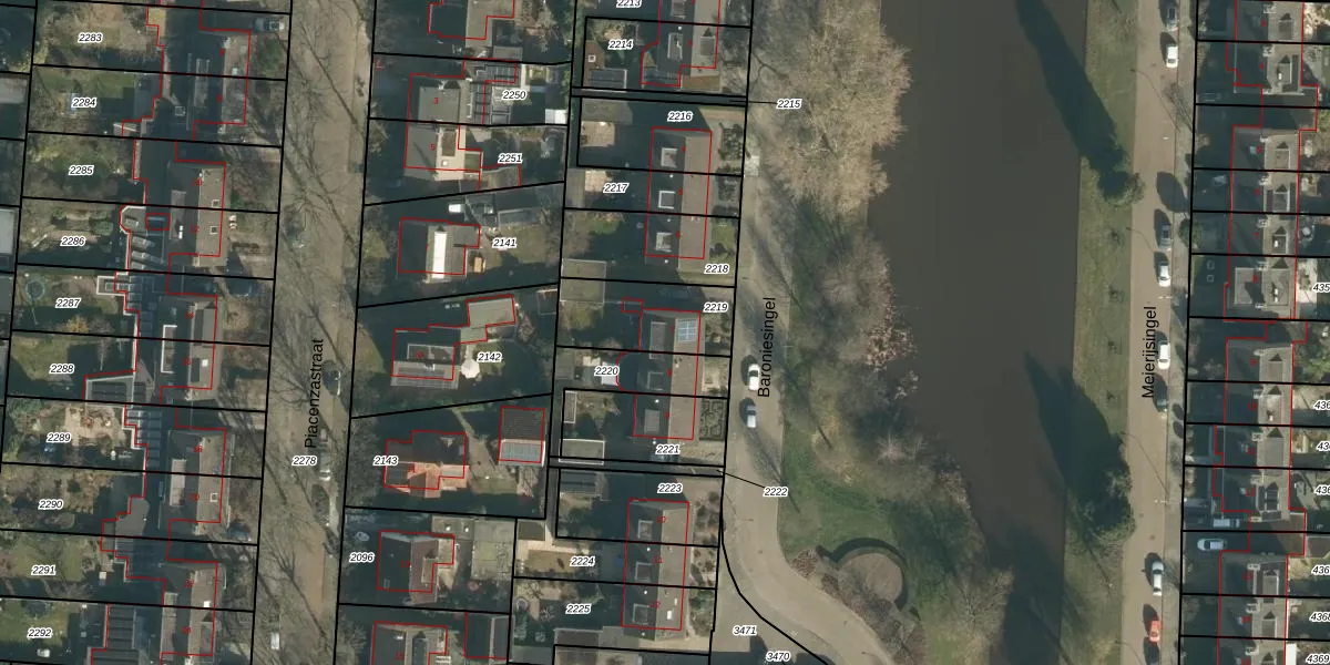 Gebruik de zoekbalk of klik op een perceel voor informatie over de adressen binnen dit perceel.