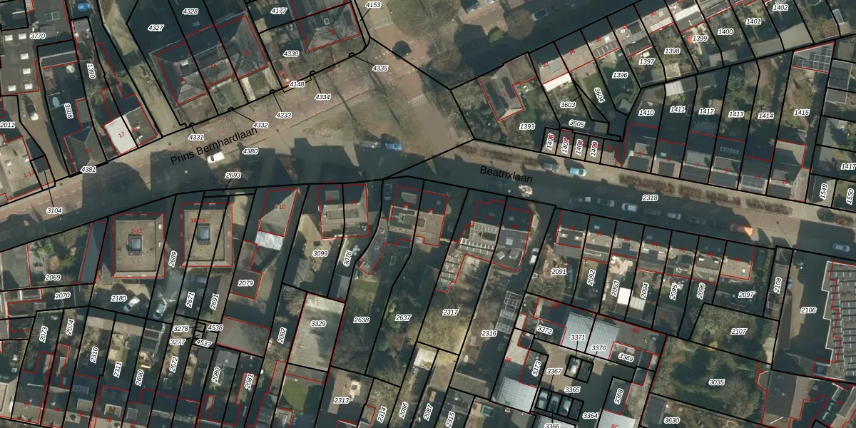 Gebruik de zoekbalk of klik op een perceel voor informatie over de adressen binnen dit perceel.