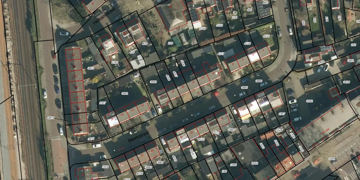 Het perceel waarop Bleekstraat 16 staat heeft een oppervlakte van 165 m². Dit is een middelgroot perceel. De perceeloppervlakte wordt geregistreerd door het Kadaster. Gedetailleerde informatie over de maten van dit perceel kunt u vinden in het rapport Kadastrale kaart met maatvoering van Bleekstraat 16.