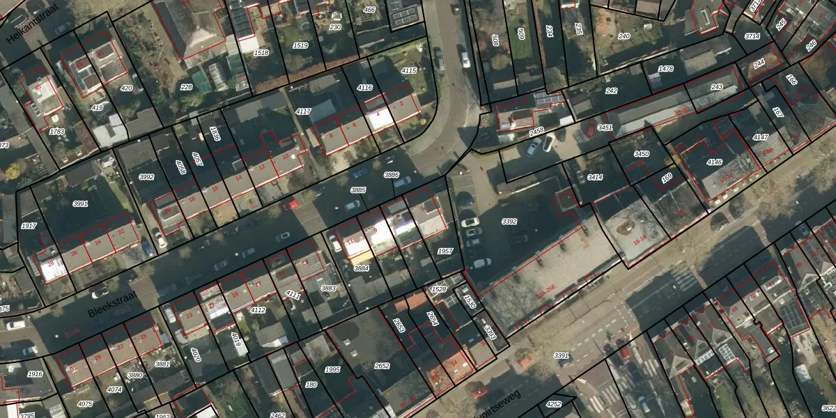 Gebruik de zoekbalk of klik op een perceel voor informatie over de adressen binnen dit perceel.