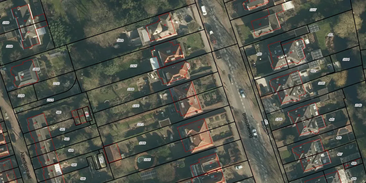 Het perceel waarop Bosscheweg 51 staat heeft een oppervlakte van 595 m². Dit is een groot perceel. De perceeloppervlakte wordt geregistreerd door het Kadaster. Gedetailleerde informatie over de maten van dit perceel kunt u vinden in het rapport Kadastrale kaart met maatvoering van Bosscheweg 51.