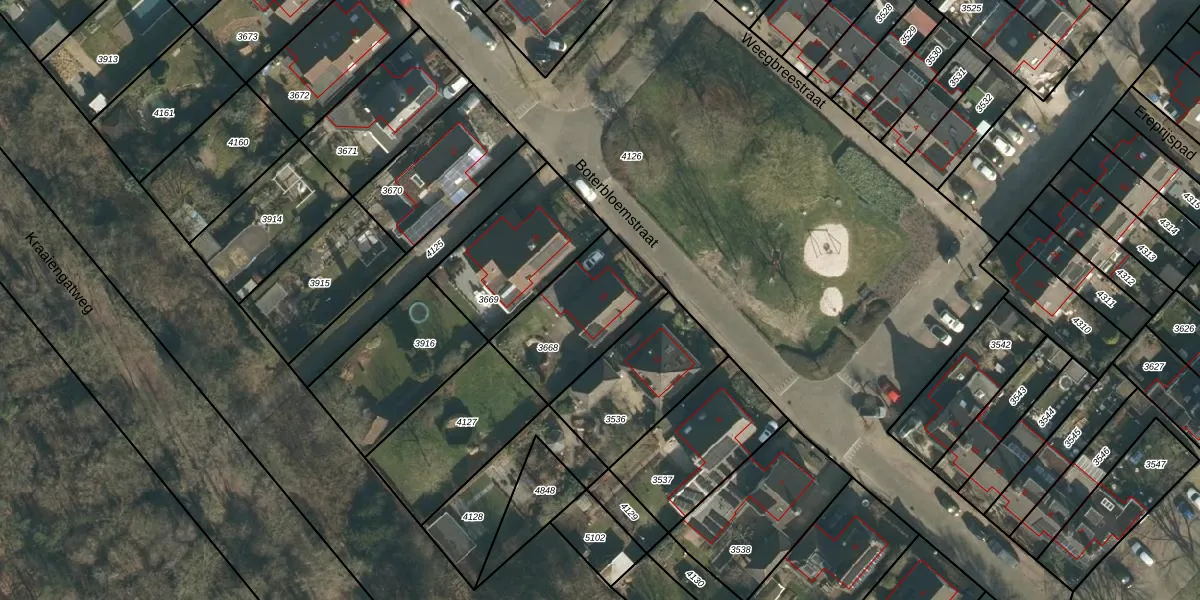 Het perceel waarop Boterbloemstraat 13 staat heeft een oppervlakte van 401 m². Dit is een groot perceel. De perceeloppervlakte wordt geregistreerd door het Kadaster. Gedetailleerde informatie over de maten van dit perceel kunt u vinden in het rapport Kadastrale kaart met maatvoering van Boterbloemstraat 13.