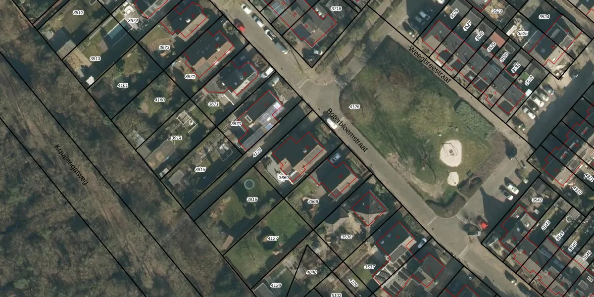 Het perceel waarop Boterbloemstraat 15 staat heeft een oppervlakte van 415 m². Dit is een groot perceel. De perceeloppervlakte wordt geregistreerd door het Kadaster. Gedetailleerde informatie over de maten van dit perceel kunt u vinden in het rapport Kadastrale kaart met maatvoering van Boterbloemstraat 15.