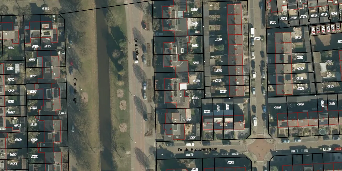 Gebruik de zoekbalk of klik op een perceel voor informatie over de adressen binnen dit perceel.