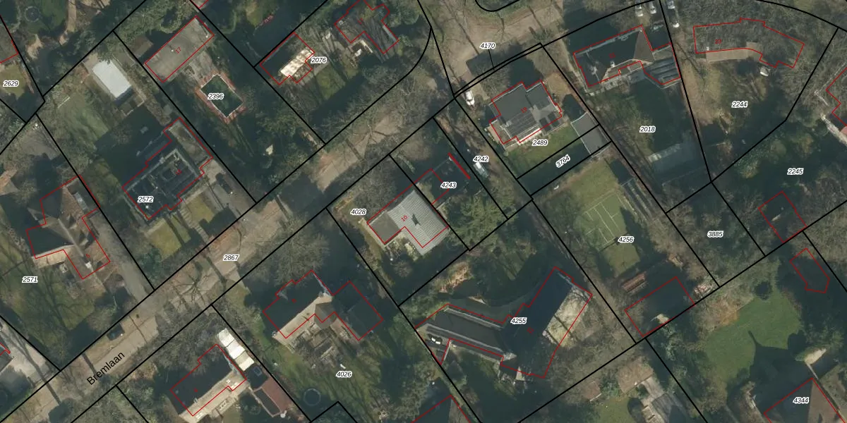 Het perceel waarop Bremlaan 10 staat heeft een oppervlakte van 610 m². Dit is een groot perceel. De perceeloppervlakte wordt geregistreerd door het Kadaster. Gedetailleerde informatie over de maten van dit perceel kunt u vinden in het rapport Kadastrale kaart met maatvoering van Bremlaan 10.