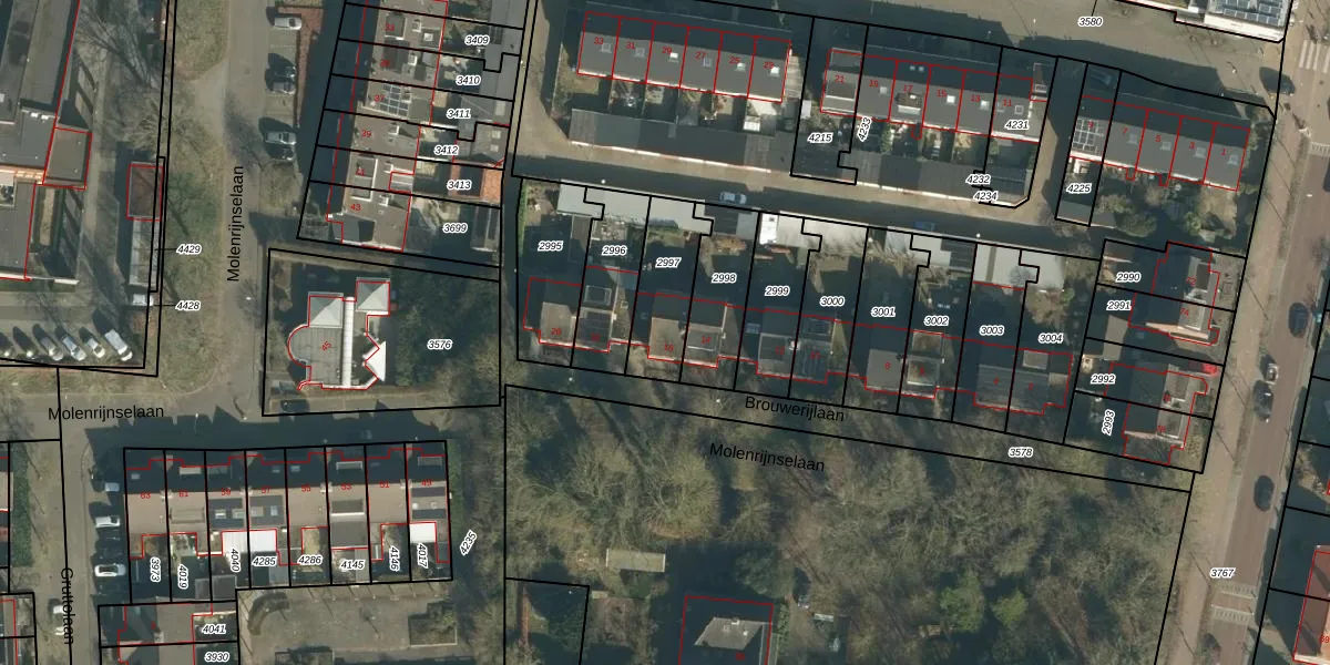 Gebruik de zoekbalk of klik op een perceel voor informatie over de adressen binnen dit perceel.