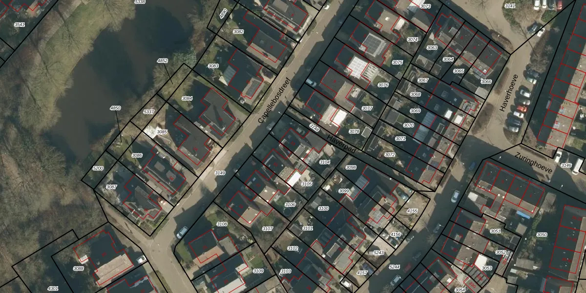 Gebruik de zoekbalk of klik op een perceel voor informatie over de adressen binnen dit perceel.