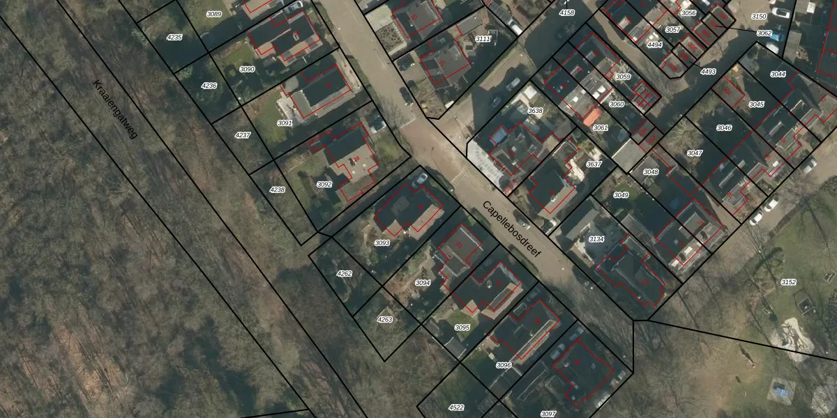 Gebruik de zoekbalk of klik op een perceel voor informatie over de adressen binnen dit perceel.