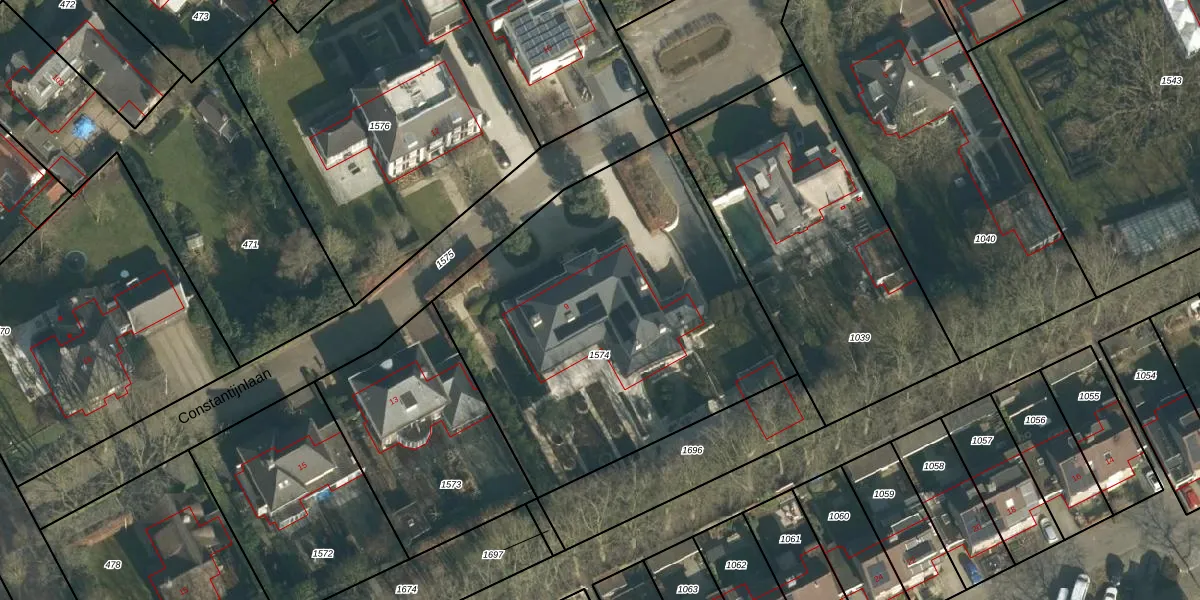 Het perceel waarop Constantijnlaan 9 staat heeft een oppervlakte van 2047 m². Dit is een zeer groot perceel. De perceeloppervlakte wordt geregistreerd door het Kadaster. Gedetailleerde informatie over de maten van dit perceel kunt u vinden in het rapport Kadastrale kaart met maatvoering van Constantijnlaan 9.