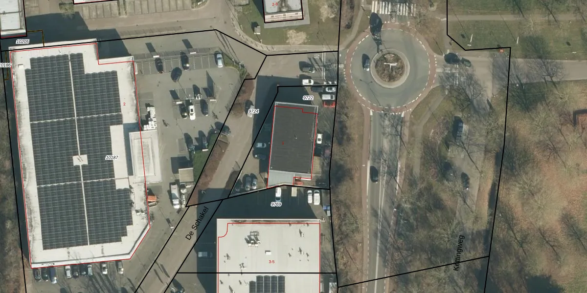 De Schakel 1 is gelegen op kadastraal perceel VUG00B9722. Deze kadastrale aanduiding is uniek en wordt gebruikt door het Kadaster om eigendomsrechten en andere zakelijke rechten vast te leggen. Het perceel maakt onderdeel uit van de kadastrale gemeente Vught.