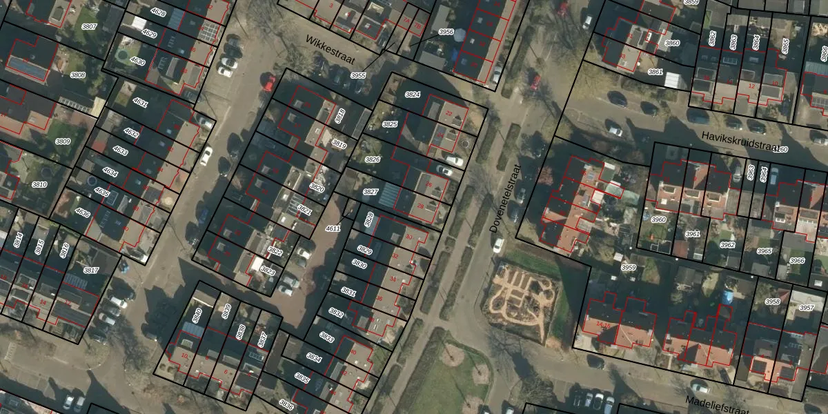Dovenetelstraat 28 is gelegen op kadastraal perceel VUG00D3827. Deze kadastrale aanduiding is uniek en wordt gebruikt door het Kadaster om eigendomsrechten en andere zakelijke rechten vast te leggen. Het perceel maakt onderdeel uit van de kadastrale gemeente Vught.