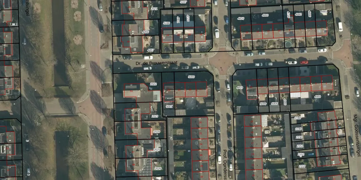 Dr. de Brouwerstraat 21 is gelegen op kadastraal perceel VUG00D5000. Deze kadastrale aanduiding is uniek en wordt gebruikt door het Kadaster om eigendomsrechten en andere zakelijke rechten vast te leggen. Het perceel maakt onderdeel uit van de kadastrale gemeente Vught.