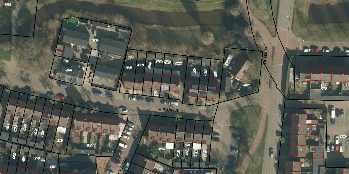 Gebruik de zoekbalk of klik op een perceel voor informatie over de adressen binnen dit perceel.
