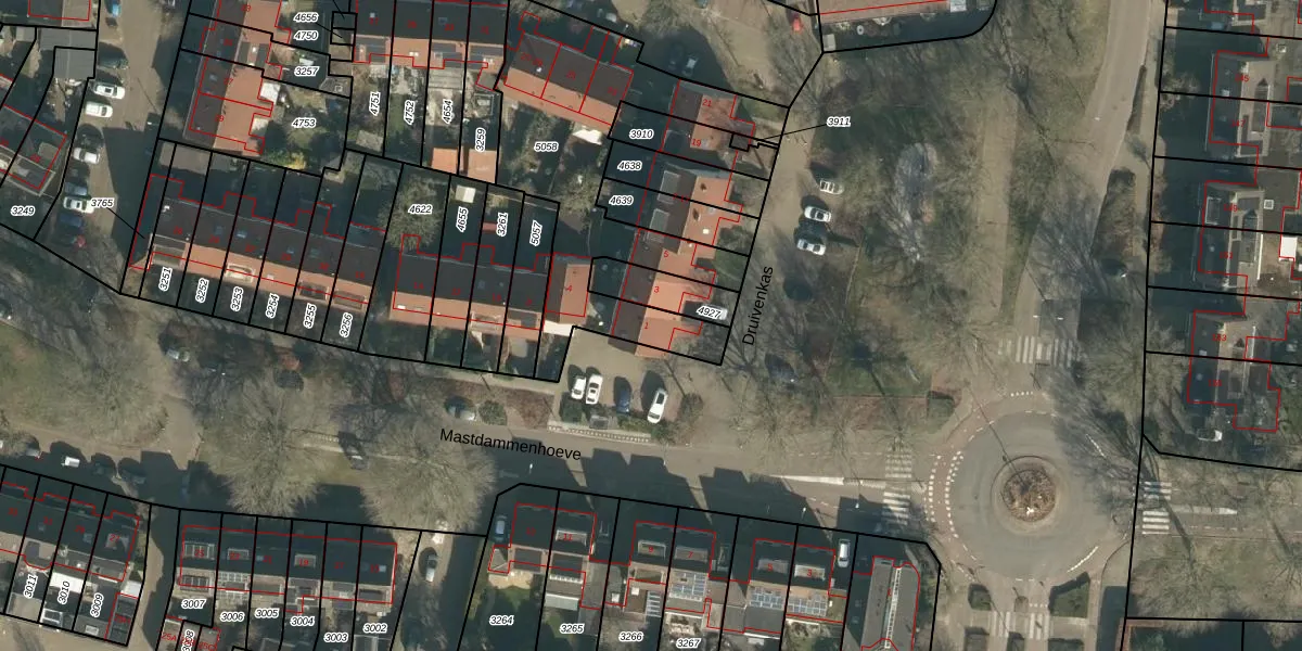 Druivenkas 1 is gelegen op kadastraal perceel VUG00D5058. Deze kadastrale aanduiding is uniek en wordt gebruikt door het Kadaster om eigendomsrechten en andere zakelijke rechten vast te leggen. Het perceel maakt onderdeel uit van de kadastrale gemeente Vught.