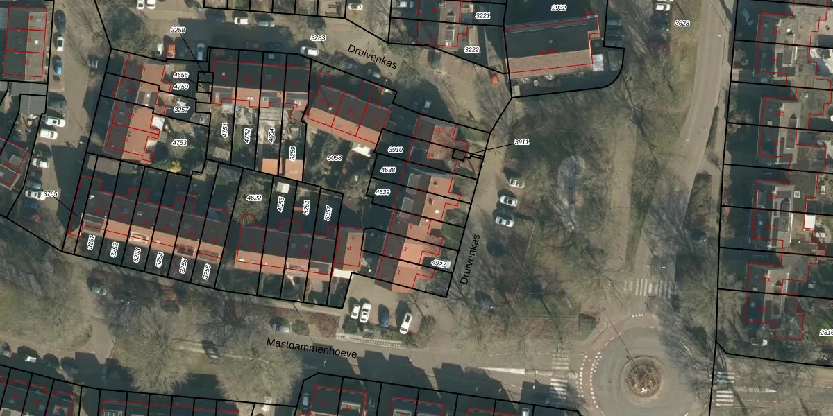 Druivenkas 9 is gelegen op kadastraal perceel VUG00D4639. Deze kadastrale aanduiding is uniek en wordt gebruikt door het Kadaster om eigendomsrechten en andere zakelijke rechten vast te leggen. Het perceel maakt onderdeel uit van de kadastrale gemeente Vught.