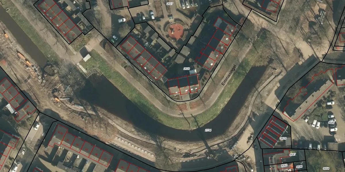 Het perceel waarop Emmasingel 15 staat heeft een oppervlakte van 1950 m². Dit is een zeer groot perceel. De perceeloppervlakte wordt geregistreerd door het Kadaster. Gedetailleerde informatie over de maten van dit perceel kunt u vinden in het rapport Kadastrale kaart met maatvoering van Emmasingel 15.