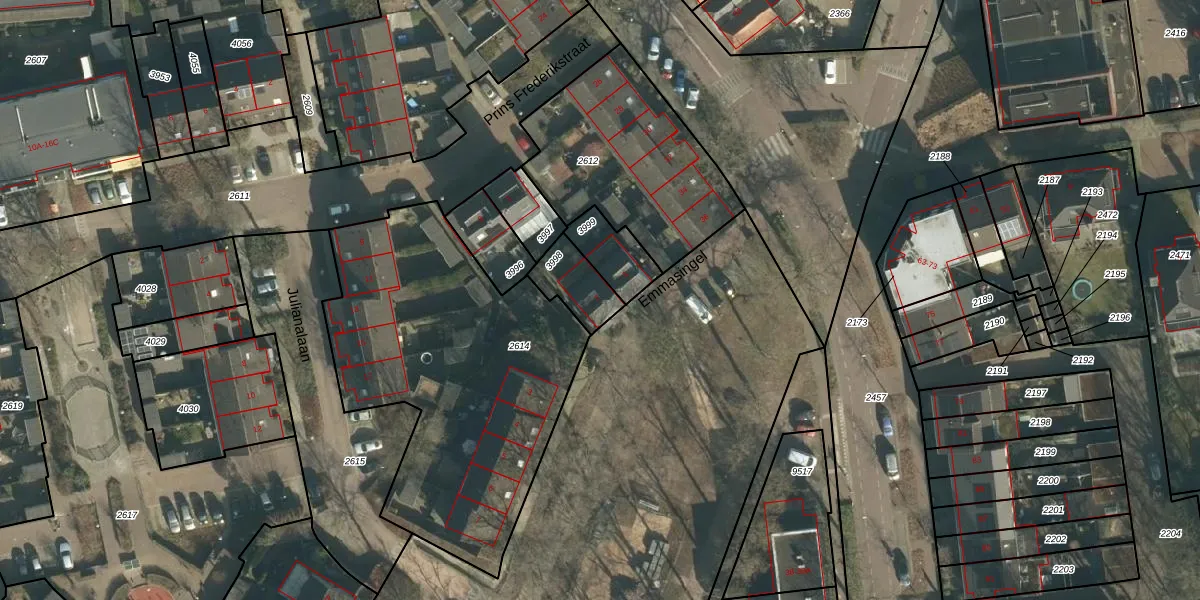 Het perceel waarop Emmasingel 2 staat heeft een oppervlakte van 127 m². Dit is een middelgroot perceel. De perceeloppervlakte wordt geregistreerd door het Kadaster. Gedetailleerde informatie over de maten van dit perceel kunt u vinden in het rapport Kadastrale kaart met maatvoering van Emmasingel 2.