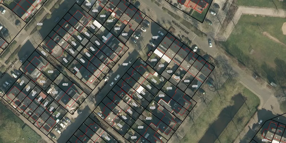 Gebruik de zoekbalk of klik op een perceel voor informatie over de adressen binnen dit perceel.