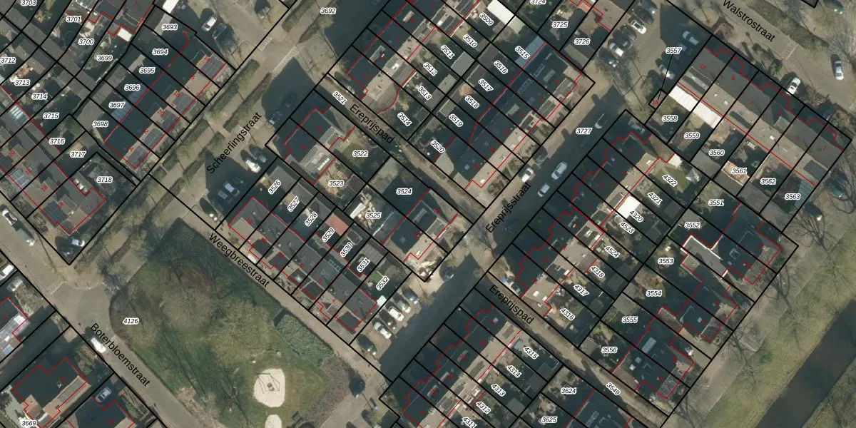 Gebruik de zoekbalk of klik op een perceel voor informatie over de adressen binnen dit perceel.