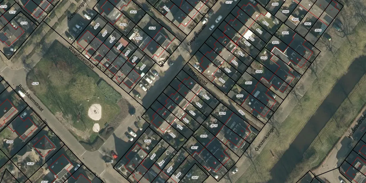 Het perceel waarop Ereprijsstraat 19 staat heeft een oppervlakte van 150 m². Dit is een middelgroot perceel. De perceeloppervlakte wordt geregistreerd door het Kadaster. Gedetailleerde informatie over de maten van dit perceel kunt u vinden in het rapport Kadastrale kaart met maatvoering van Ereprijsstraat 19.