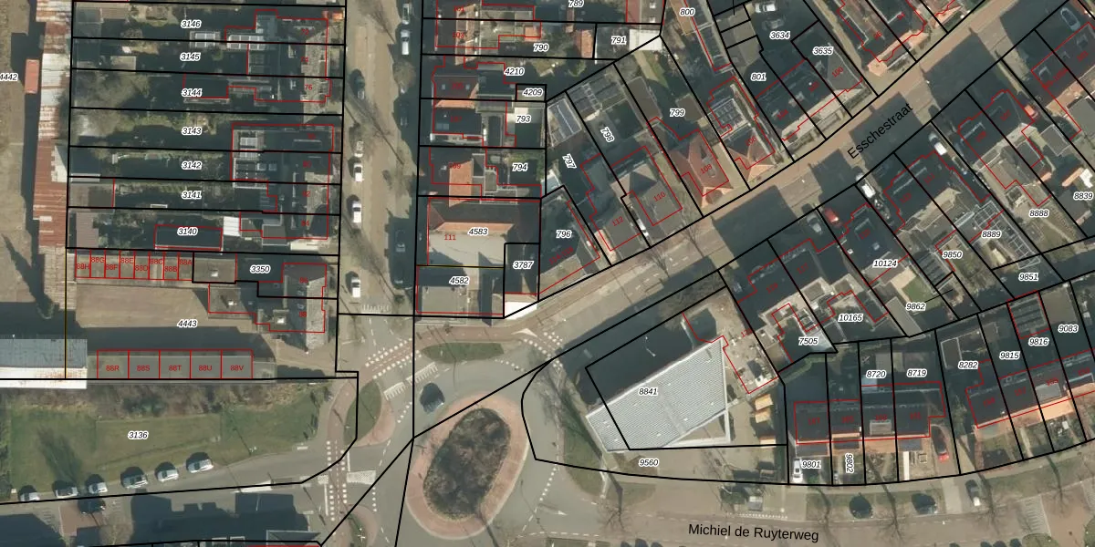 Het perceel waarop Esschestraat 118 staat heeft een oppervlakte van 162 m². Dit is een middelgroot perceel. De perceeloppervlakte wordt geregistreerd door het Kadaster. Gedetailleerde informatie over de maten van dit perceel kunt u vinden in het rapport Kadastrale kaart met maatvoering van Esschestraat 118.