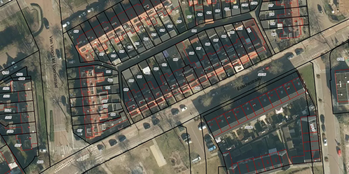 Esschestraat 22 is gelegen op kadastraal perceel VUG00L651. Deze kadastrale aanduiding is uniek en wordt gebruikt door het Kadaster om eigendomsrechten en andere zakelijke rechten vast te leggen. Het perceel maakt onderdeel uit van de kadastrale gemeente Vught.