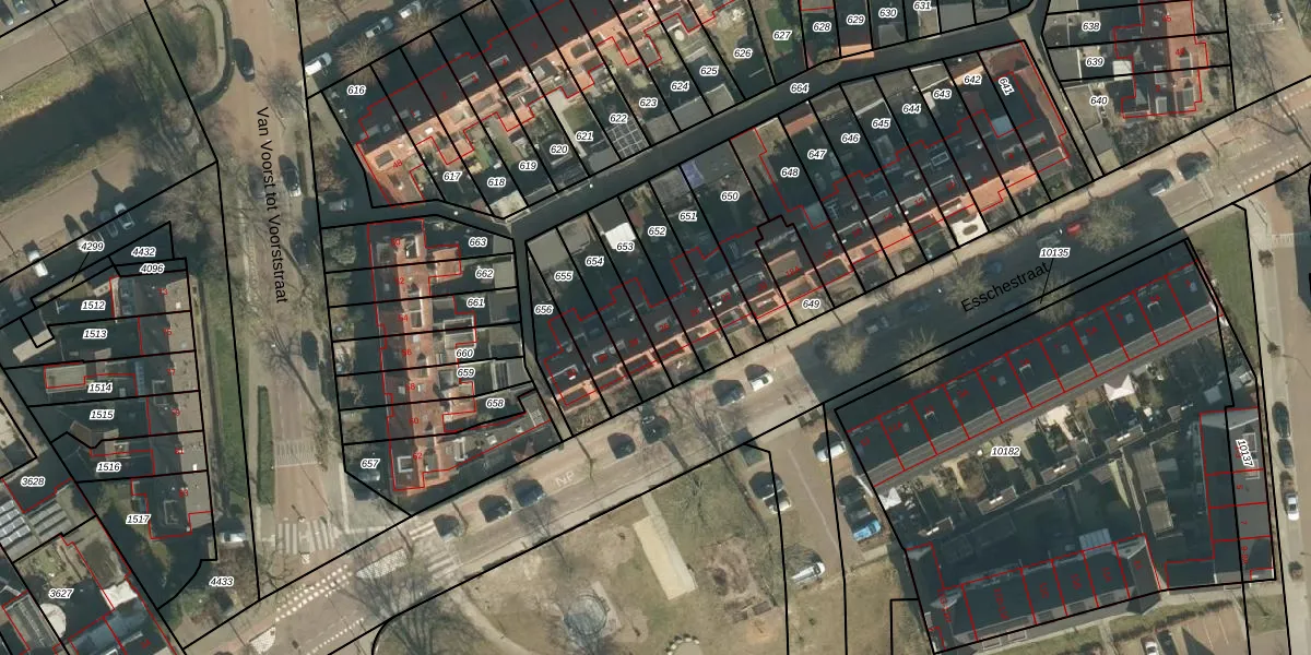 Het perceel waarop Esschestraat 26 staat heeft een oppervlakte van 156 m². Dit is een middelgroot perceel. De perceeloppervlakte wordt geregistreerd door het Kadaster. Gedetailleerde informatie over de maten van dit perceel kunt u vinden in het rapport Kadastrale kaart met maatvoering van Esschestraat 26.