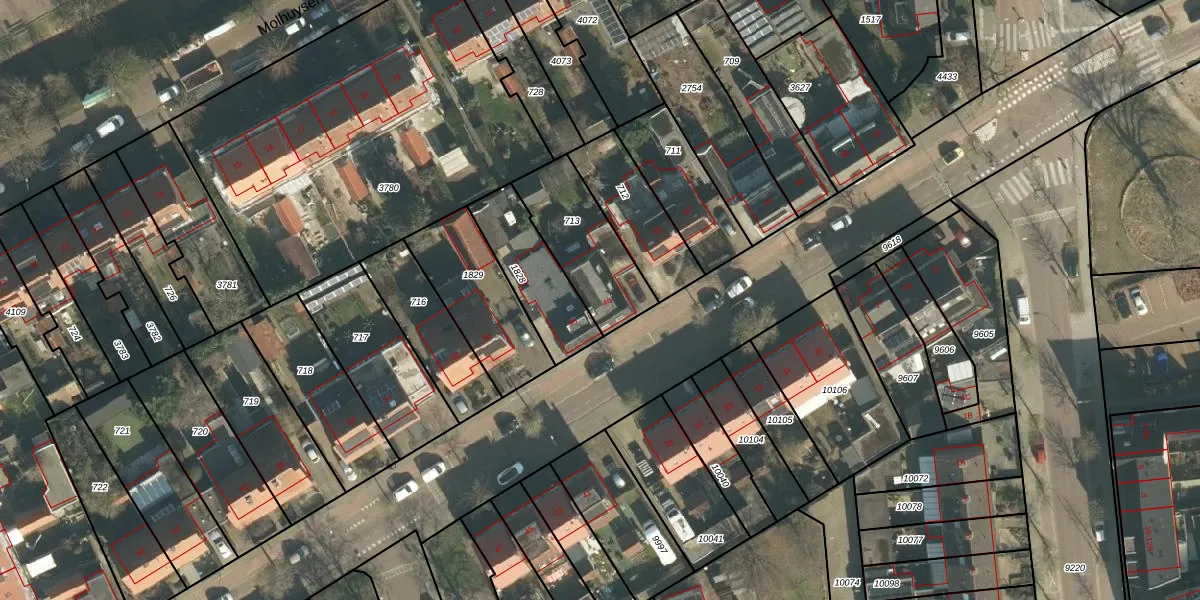 Gebruik de zoekbalk of klik op een perceel voor informatie over de adressen binnen dit perceel.