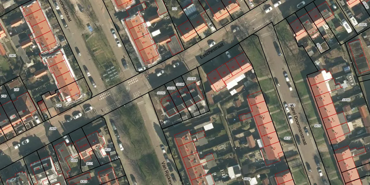 Het perceel waarop Esschestraat 57-A staat heeft een oppervlakte van 118 m². Dit is een middelgroot perceel. De perceeloppervlakte wordt geregistreerd door het Kadaster. Gedetailleerde informatie over de maten van dit perceel kunt u vinden in het rapport Kadastrale kaart met maatvoering van Esschestraat 57-A.
