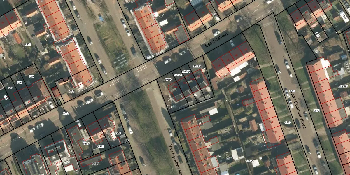 Het perceel waarop Esschestraat 59-A staat heeft een oppervlakte van 237 m². Dit is een middelgroot perceel. De perceeloppervlakte wordt geregistreerd door het Kadaster. Gedetailleerde informatie over de maten van dit perceel kunt u vinden in het rapport Kadastrale kaart met maatvoering van Esschestraat 59-A.