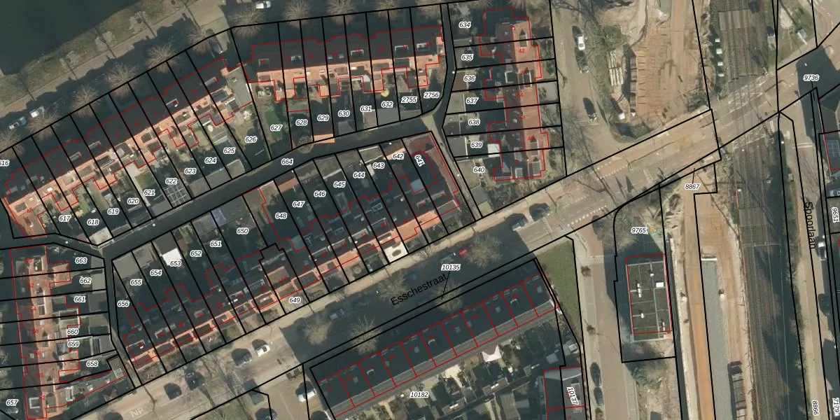 Het perceel waarop Esschestraat 6 staat heeft een oppervlakte van 136 m². Dit is een middelgroot perceel. De perceeloppervlakte wordt geregistreerd door het Kadaster. Gedetailleerde informatie over de maten van dit perceel kunt u vinden in het rapport Kadastrale kaart met maatvoering van Esschestraat 6.