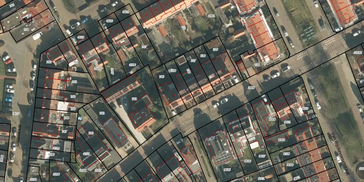 Gebruik de zoekbalk of klik op een perceel voor informatie over de adressen binnen dit perceel.