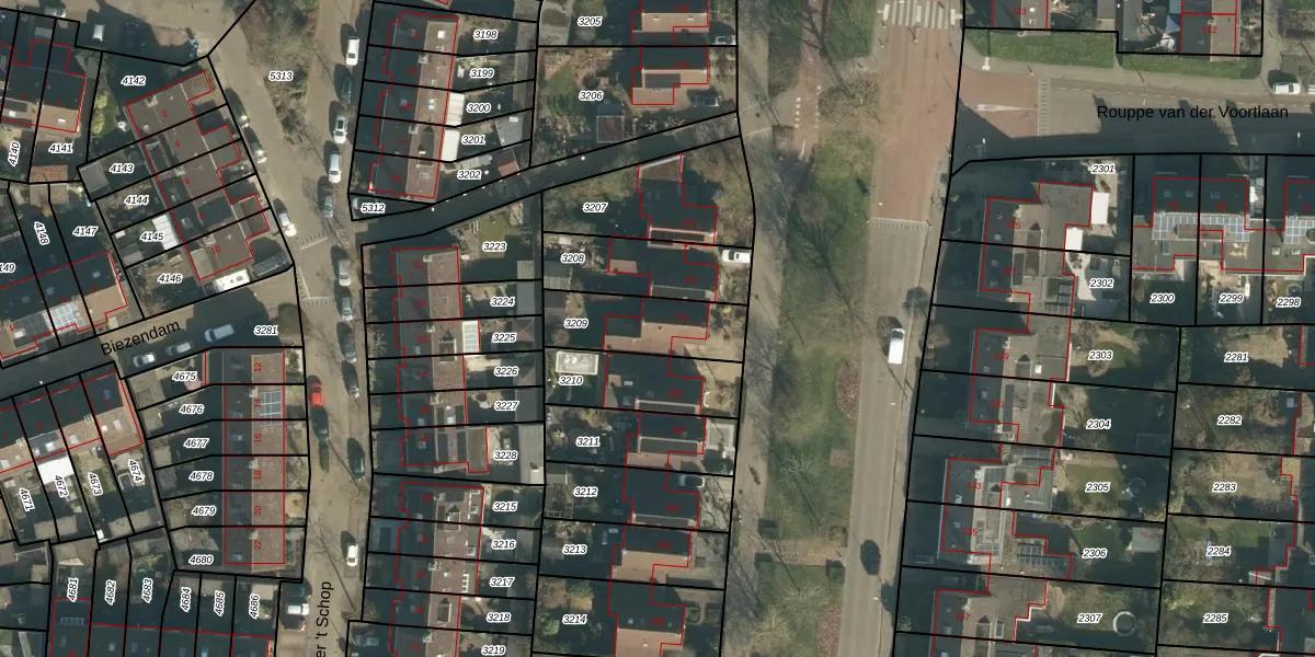 Gebruik de zoekbalk of klik op een perceel voor informatie over de adressen binnen dit perceel.