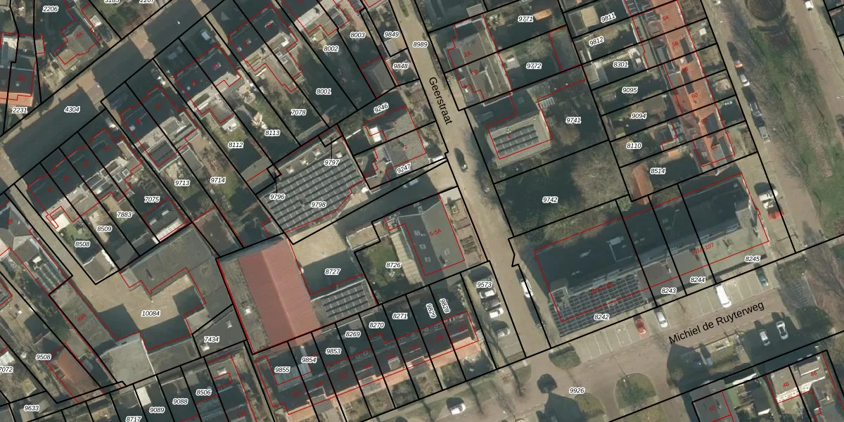 Het perceel waarop Geerstraat 5-A staat heeft een oppervlakte van 515 m². Dit is een groot perceel. De perceeloppervlakte wordt geregistreerd door het Kadaster. Gedetailleerde informatie over de maten van dit perceel kunt u vinden in het rapport Kadastrale kaart met maatvoering van Geerstraat 5-A.