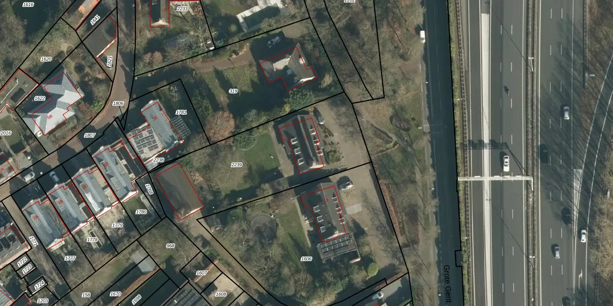 Het perceel waarop Grote Gent 11 staat heeft een oppervlakte van 1962 m². Dit is een zeer groot perceel. De perceeloppervlakte wordt geregistreerd door het Kadaster. Gedetailleerde informatie over de maten van dit perceel kunt u vinden in het rapport Kadastrale kaart met maatvoering van Grote Gent 11.