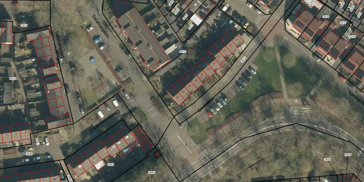 Het perceel waarop Gruttolaan 42 staat heeft een oppervlakte van 3587 m². Dit is een zeer groot perceel. De perceeloppervlakte wordt geregistreerd door het Kadaster. Gedetailleerde informatie over de maten van dit perceel kunt u vinden in het rapport Kadastrale kaart met maatvoering van Gruttolaan 42.